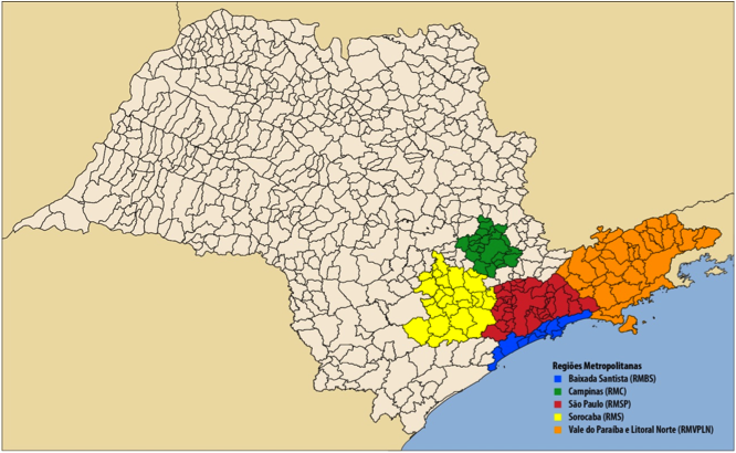 Figura – Regiões Metropolitanas no Estado de São Paulo