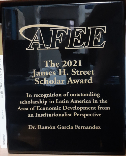 Anualmente, a associação concede premiações em quatro modalidades (Veblen-Commons Award, Clarence Ayres Scholar, James H. Street Scholar e AFEE Service Award). O professor Ramón foi o único pesquisador de universidades brasileiras dentre os laureados na edição de 2021.